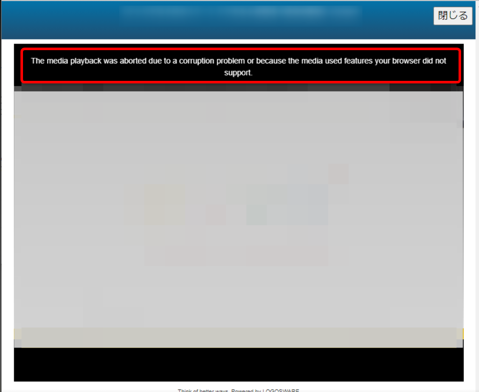 職場内のネットワークが一時的に不安定になったり、帯域に制限がかかったりすると、動画データの読み込みに失敗し、ブラウザ側で「破損」と判断されることがあります。時間を置いてから再試聴を行うか、可能であれば別のネットワークをご使用ください。