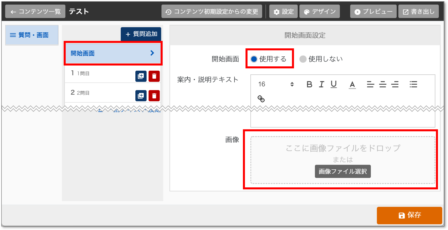 - 開始画面に画像が設定されている場合は、その画像がサムネイルとして表示されます。
